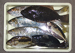 亀崎 孫、息子夫婦と一緒にファミリーフィッシングです。干潮の9時開始。エサトリもいない状況で場所を変わろうかなどと言っていたら潮が高くなるにつれウキが沈むようになり活気づいてきた。 写真下は午後2時までの釣果です。秋晴れ快晴のもと、みんなでワイワイガヤガヤと楽しい釣りでした。 釣った魚は刺身と天ぷらです。美味かったことこの上ないです。 | ![]() |