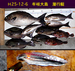 牟岐大島 潜行艇、タニ 息子に誘われて牟岐大島です。息子は潜行艇へ、私はタニでの釣りとなりました。海はベタナギ。足元には巨大なキツが舞う。ギューン、プツンか針ハズレ。プツンはキツ、ハズレはイサギだろう。結局この繰り返しで私が釣ったのはイサギ1匹だけ。 写真は息子の釣果です。グレは全て尾長。クチブトはワキグレとなって潜行艇の沖で乱舞している。尾長は参加していないようで磯に付いている。これが喰ってきたようだ。 キツも40cmを超えると臭みもなく美味い。今までは湯引きにしていたけれど今回は炙り刺身にしてみました。これがまた絶品。皮の焦げ目の食感が最高、日本酒は熱燗、天国ですな。 | ![]() |