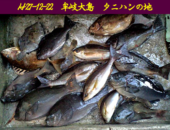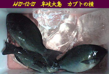 牟岐大島 カブトの横 息子の釣行です。渡船客21名、船内クジは21番、お見事、これを最下位と言う。年末の日曜日、釣り客は半端じゃない、大島を1周したらしいが上がる磯はない。なんとかカブトのダルマ側にある高い所に上げてもらったらしい。 開始早々、コマセを撒くと足元でグレが舞う。バタバタと3匹釣れ、爆釣かと喜んだがそれで終了。グレは消えてしまい、あとは納竿までアタリ無し。何かが変だわと息子が言っていた。この前のタニハンの地と同じ。 他の磯も芳しくない模様、3匹も釣れば大島の竿頭かもしれないと船長さんが言っていたらしい。ここしばらくはこんな状態が続くでしょう。しばらくお休みです。 | ![]() |