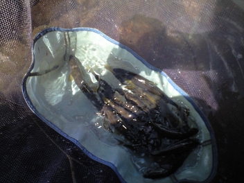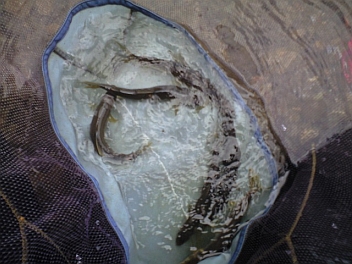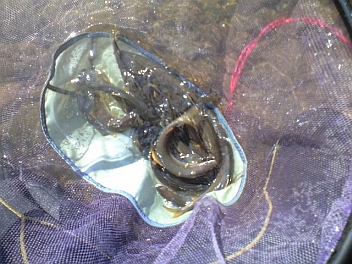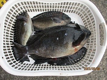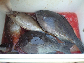 あのスピードと重量感!アタリがあったのは2回だけ・・・たぶんキツでしょう。今回もエサが残りました。また行きます。 | ![]() |