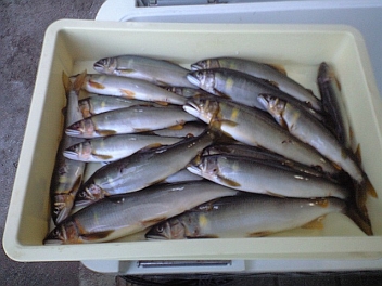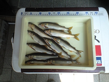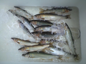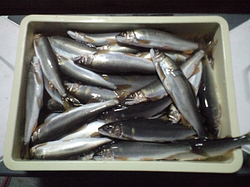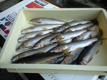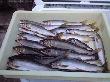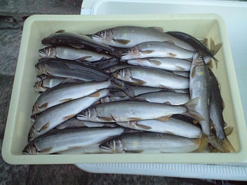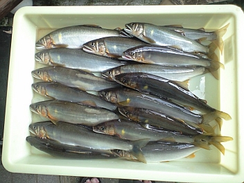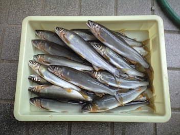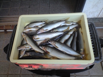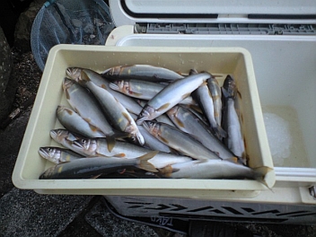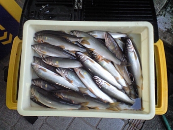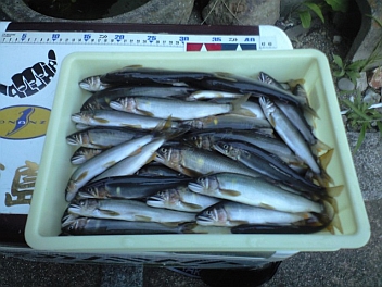 勝浦川 チャラ瀬で 55匹 試しにやってみたチャラ瀬で思わぬ釣果に…。 | |